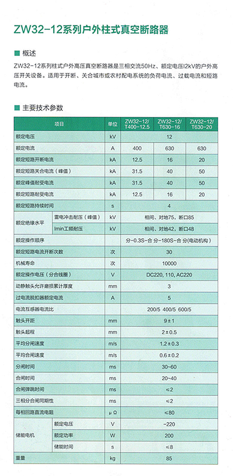 ZW32-12系列戶外柱式真空斷路器